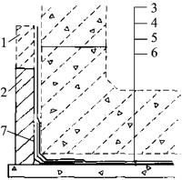 1—临时保护墙;2—永久保护墙;3—细石混凝土保护层;4—卷材防水层;5—水泥砂浆找平层;6—混凝土垫层;7—卷材加强层