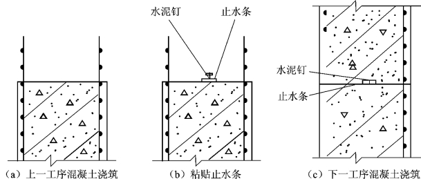 止水带的构造形式通常有埋入式、可卸式、粘贴式等,目前采用较多的是埋入式。