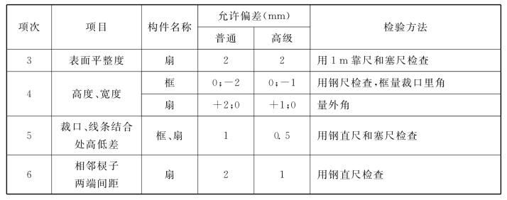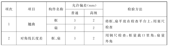 表9.1 木门窗制作的允许偏差和检验方法