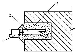 1—窗框;2—铁脚;3—留洞60mm×60mm×100mm