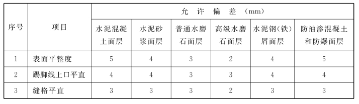 表9.16 整体面层的允许偏差