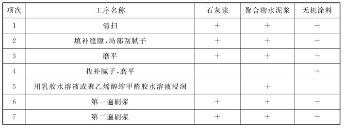 表9.22 室内刷浆工程主要工序