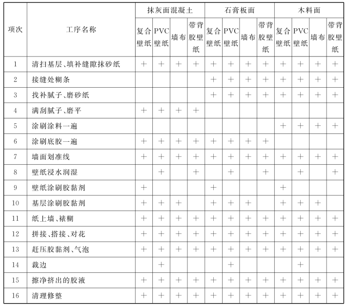 表9.24 裱糊的主要工序