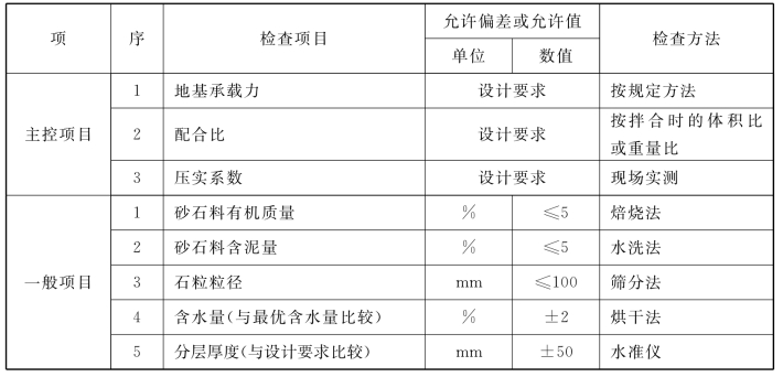 4.3.4 砂和砂石地基的质量验收标准应符合附表4.3.4的规定。