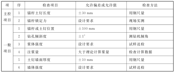 附表7.4.5 锚杆及土钉墙支护工程质量检验标准