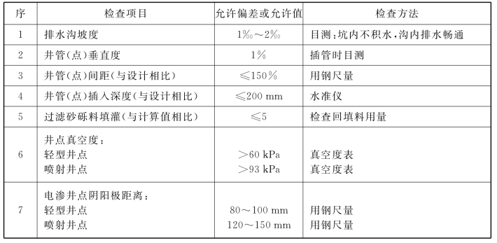 附表7.8.6 降水与排水施工质量检验标准