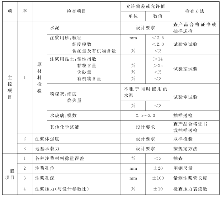 说明:4.1.7 本规范第4.1.5、4.1.6条规定的各类地基的主控项目及数量是至少应达到的,其他主控项目及检验数量由设计确定,一般项目可根据实际情况,随时抽查,做好记录。复合地基中的桩的施工是主要的,应保证20%的抽查量。