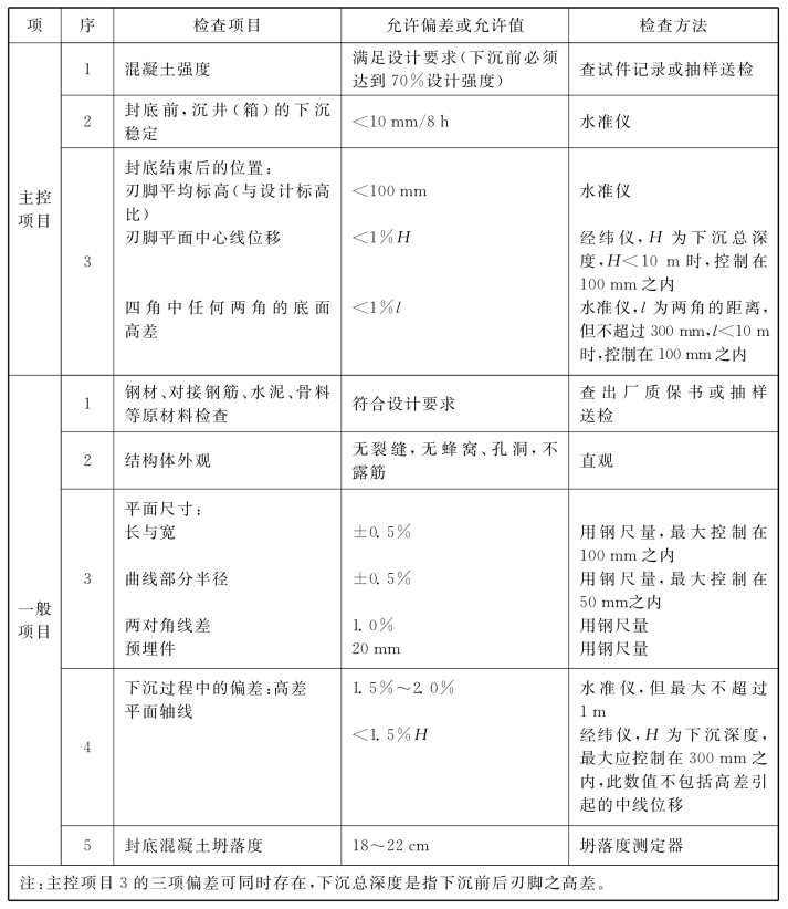 附表7.7.10 沉井(箱)的质量检验标准