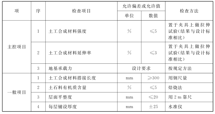 附表4.4.4 土工合成材料地基质量检验标准