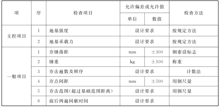 4.6.2 施工中应检查落距、夯击遍数、夯点位置、夯击范围。