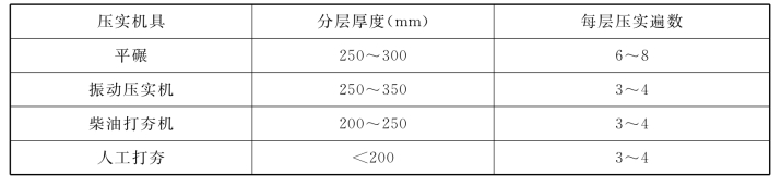 4.3.2 施工过程中必须检查分层厚度、分段施工时搭接部分的压实情况、加水量、压实遍数、压实系数。