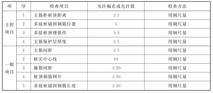 7.6.12 地下墙的钢筋笼检验标准应符合本规范附表7.6.4-1的规定。其他标准应符合附表7.6.12的规定。