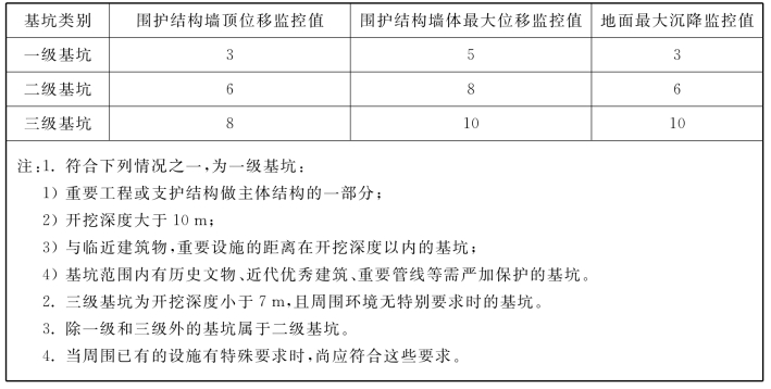 说明:7.2.4 含水地层内的支护结构常因止水措施不当而造成地下水从坑外向坑内渗漏,大量抽排造成土颗粒流失,致使坑外土体沉降,危及坑外的设施。因此,必须有可靠的止水措施。这些措施有深层搅拌桩帷幕、高压喷射注浆止水帷幕、注浆帷幕,或者降水井(点)等,根据不同的条件选用。