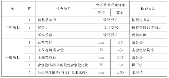 4.2.4 灰土地基的质量验收标准应符合附表4.2.4规定。