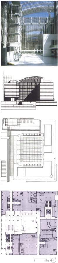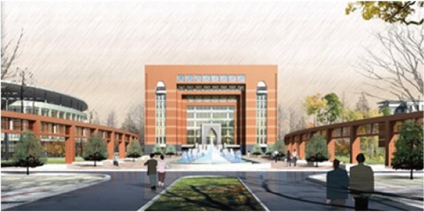 图4是一个图书馆的项目,我们可以看到主体建筑的造型是对称的、建筑前面的喷泉是对称的、喷泉两边的配景植物和走廊是对称的、包括整个地形也是对称的,整张画面构图中对称手法的大量应用给以人安静、稳重、秩序井然的感觉。