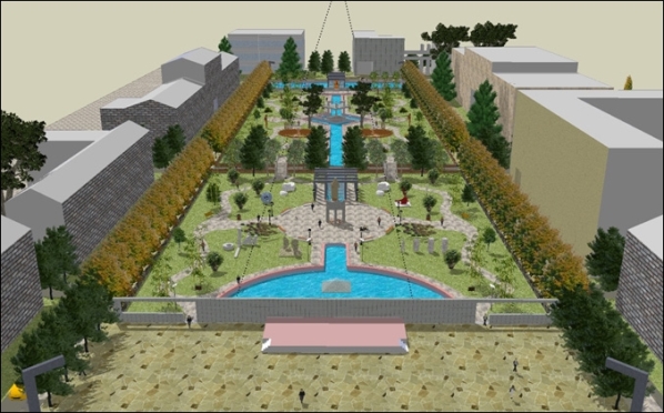 对称与均衡亦可使作品产生有节奏而统一的美感(如下图某景观的设计手法所示)。
