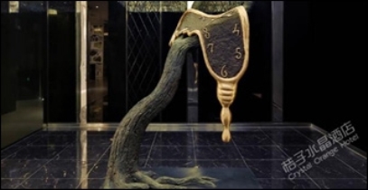 从整体设计的风格中品味到“生命的意义不仅仅是不停地加速”,让我们不由得回荡起了超现实主义大师达利的那幅名作—《记忆的永恒》,设计师运用他那熟练的技巧精心刻画那些离奇的形象和细节,给顾客创造了一种引起幻觉的真实感,令顾客感受出了平时日常生活中不常出现的故事情节,把他们引入了一段具有生命哲理的故事中来。这种不常见的故事无疑就是酒店想要表达的独特文化精髓。