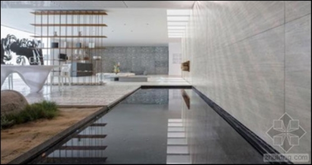光对空间氛围的营造影响巨大,利用光影的手法更能烘托出空间中形态、色彩、材质的美感。室内光环境的设计中包含自然光和人工光,自然光的设计需要考虑到空间窗户的造型和位置,利用自然光满足白天的照明以及光影视觉效果。如希腊光线酒店中利用自然光和室内水池倒影形成的光影效果。人工光环境的创造需要遵循照明设计的原则即满足功能性和美观性原则。