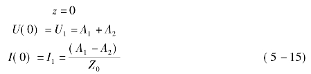 首先将原点设在始端,导线长度为l,根据式(5-13),有