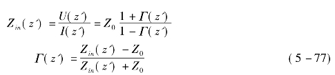 传输线上任意一点的输入阻抗定义为该点电压与电流之比。将坐标原点设在终端处,则传输线上z'处的输入阻抗为