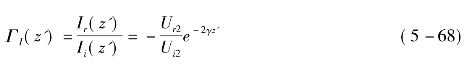 反射系数定义为传输线上任意一点的反射波电压(或电流)与入射波电压(或电流)之比。设原点在终端处,根据式(5-26),有