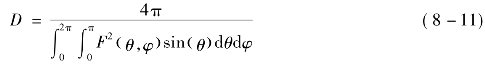 下面求方向系数D与归一化方向函数F(θ,φ)之间的关系。天线实际辐射的功率可用坡印廷矢量积分法计算,即
