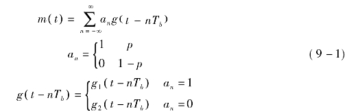 式中m(t)为数字数字基带信号;an为输入码序列,只有“1”和“0”两个值,它们出现的概率分别为p和1-p;g(t-nTb)为码型,有两种波形g1(t-nTb)和g2(t-nTb),分别对应an的1”和“0”,其码元宽度为Tb