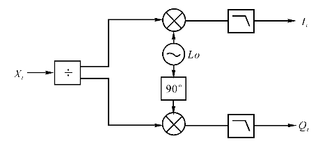 矢量正交解调原理框图见图9-12。输入信号为窄带调制信号,为实信号,首先被分成两路,然后分别与本振相乘,最后进行滤波,得到IQ两路信号。已知输入信号为