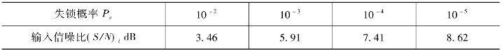 对残留载波的捕获,必须保证载波环的锁定,在载波锁相环环路单边等效带宽BL内,环路的失锁概率与环路的输入信噪比(S/N)i有确定的关系,见表9-1。