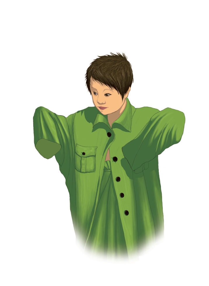 怎么,他那件本来很小的、穿了三年的绿军装,已经拖到他膝盖,成了大衣啦!那条本来盖不没袜管的裤子,竟比腿还长了,只得把裤脚卷起来。那双紧脚的跑鞋,大得像只小船了,脚后跟要空出快一寸,还沉着哩,他走路得拖着……
