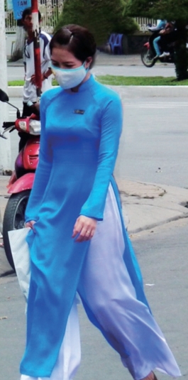 进入越南已经是第六天,富国岛阳东镇、河仙城和迪石市里都不曾见过被称作越南国服的奥黛,今天第一遭,自然好奇,睁大眼睛多看两眼。这奥黛装衣料轻盈,长袍加身,和自小见惯的中国旗袍大有相似之处。年轻女性着之,前凸后翘,三围分明,款款而行,的确仪态万方。只是为何为越南穿国服者,不似东京银座街上穿和服妇女比比皆是?或许过几天到西贡河内会多见到一些?