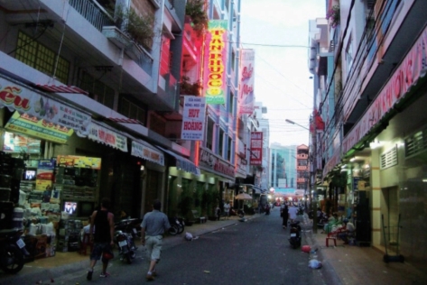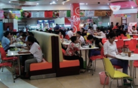 又往前走,街面行人、摩托车、商店渐渐多起来,楼都不高,很多三四层楼房是大公司驻扎之地,例如该国移动电话公司,各家银行以及三星索尼等跨国公司。太阳当顶,走到饥渴难耐,极度需要休息凉快时候,一个栅栏围墙里停满摩托车的大超市救了我。卖场里空调冷气很快令人清爽下来,找地方冲水擦洗一把,把疲劳丢去大半。随便在超市里转转,找到一楼一个很大的快餐厅,坐下点一份套餐饭慢慢吃完。环顾周边,午餐饭点儿,吃饭的大多是白领、学生和带孩子的老人、家长,和国内麦当劳、肯德基、披萨店里差不多情景。如此档次的快餐店和超市即使放在北京、上海、深圳这样的中心大城市也不掉价儿。但我感觉并未进入百姓日常生活,这属于城市高端消费方式,普通百姓逛商场看个新鲜偶尔买来品尝。越南和中国体制相似之处很多,作为政府发展导向和样板,搞若干形象工程是一样的。饭后在超市各处走走看看,比对各品类价格,和我的感觉大致相同。猪肉、蔬菜价格和我们国内大体持平,越南一般工薪阶层的收入尚不足以支付这种消费。我相信百分之八九十以上普通百姓日常生活依靠的是菜市场和街边店以及流动摊贩,像船娘那样的家庭以这种价格计算,只能过逢年过节吃几顿肉的日子。当然,社会在发展过程中,十年、二十年以后,现在的样本工程消费方式飞入寻常百姓家指日可待,中国已经走完这个过程,越南加油!