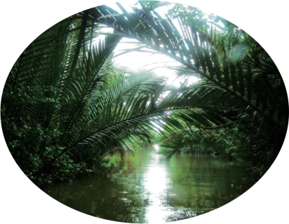 过一段河面,两岸树枝密集相接搭起枝叶棚帐,有的地方甚至需俯身低头躲避。船娘早已关闭柴油机,操起船后双桨划船通过,她指指水下说grass,我明白是怕水草缠住螺旋桨推进器烧坏机器,那麻烦就大了。