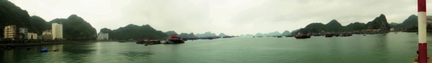 大巴拉着一车人在吉婆岛中心区各街道转圈接人,正好给我时间看看街景,看到了政府楼,行政区、高档住宅区、等没半天工夫走不下来的一些街区和街心公园,主要商业娱乐区就在我们住的附近,昨晚今早都游览过,遗憾的是没能登上制高点公园。最后一站大巴开进吉婆长途客运站,接几位背包客,我估计是一大早从海防渡海过来的。这样的游客按昨天我的体验,上午和我们一起坐船游,下午我们回河内,他们又给组合到别的团里继续其游程。想到我的海防之旅被骗泡汤,又是一阵懊恼。