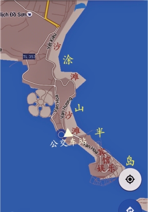 我想了个办法。大早服务员上班我下楼找到她,拿出手机上的涂山地图给她看,上边都是越南字,明白了。又把从百度下载的公共汽车图给她看,告诉她我要从市里坐公共汽车去,有没有?她恍然大悟,笑了,原来问两天是问这个呀。抽屉里取张白纸,坐桌前写了三行字,站起身指着字比划着告诉我,意思就是这个汽车站,公共汽车直接到,把写字纸拿给我。她说的话我听不懂,写的字也大字不识一个,意思我全明白了,就问她从这儿出门怎么去汽车站?她比划着直走拐弯再直走再拐弯,然后指指写字纸和嘴,意思是你拿着写的字不会问哪,她们全海防的人没有不知道的,就你一冤大头东南西北晕,哈。OK,OK,谢谢谢谢,背起包出发去涂山。