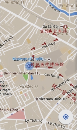 赤日炎炎似火烧,高热难耐,走一小会儿找家卖电器有空调商店坐坐消暑,走进一个有空调的餐厅奢侈地吃顿高价午餐,味同嚼蜡也不管了,为的是那点儿冷气。大量喝水,暖瓶见底儿叫餐厅给灌好。走走停停,坐街边摊喝绿豆粥,就着和卖粥老太太聊几句,人家老太太也能说几句英语呢。喝杯甘蔗汁趁机坐坐。停停走走,二公里路叫我走出五十分钟多才到传统医学博物馆门口。有导航倒是不必问路,出门我就用上了VINAPHONE卡,信号稳定不掉线。
