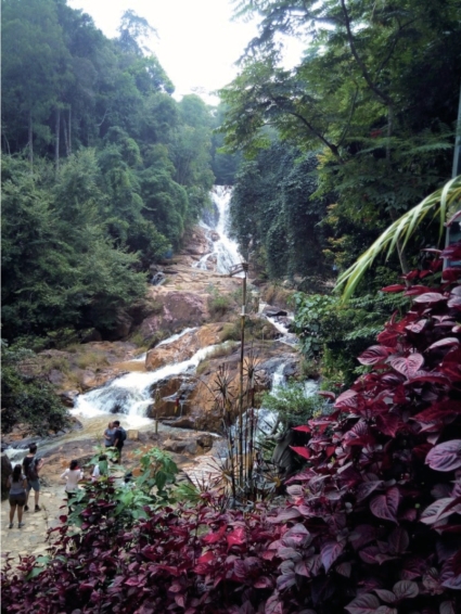 观景平台莲花池边看Camly瀑布