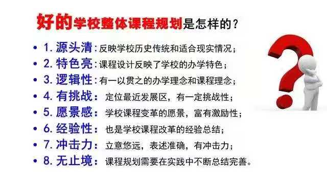 (2)学校课程规划:是根据学校办学理念和办学特色等实际情况,对存在于本校的所有课程进行全过程的、统整性的规划,以调适学校情境中的国家课程、地方课程和校本课程之间的关系,切实反应学校教育哲学,促进学校的整体发展。