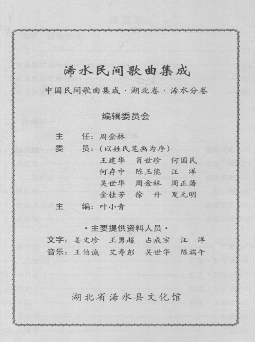 中国民间歌曲集成 ·湖北卷·浠水分卷