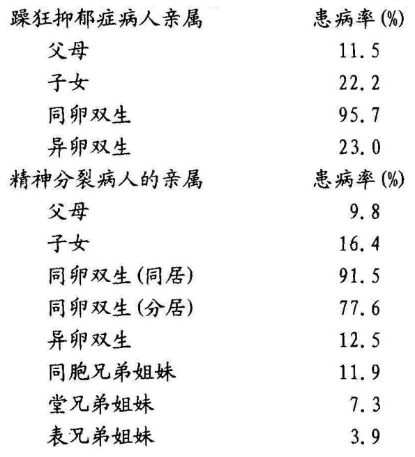 这些数据表明,许多重度精神疾病在发病原因上,遗传因素确实有明显的作用,只是对于遗传因素作用的机制还不太清楚。