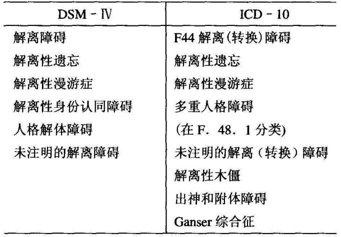 DSM-Ⅳ中解离障碍的分类及其在ICD-10中的对应诊断