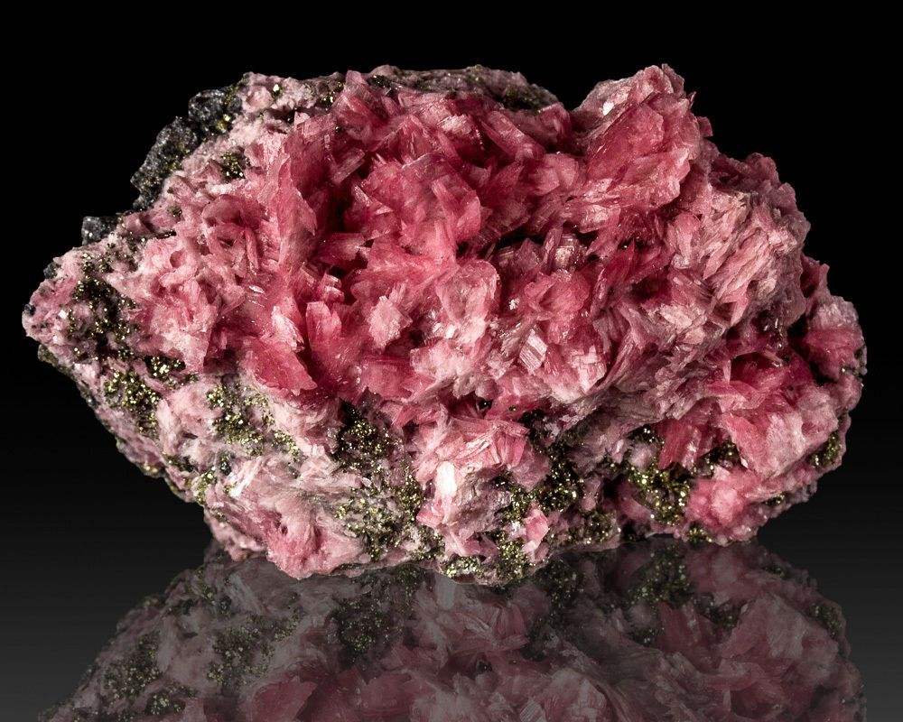 蔷薇辉石是一种硅酸盐矿物,产于各种锰矿石中。它主要被用作装饰石料或饰品及雕塑品。蔷薇辉石的晶体为板状或板柱状,晶体的集合体为粒状或块状,浅粉到红色有玻璃光泽。蔷薇辉石表面被氧化后常出现一些黑色,那是锰的氧化物和氢氧化物形成的薄膜。