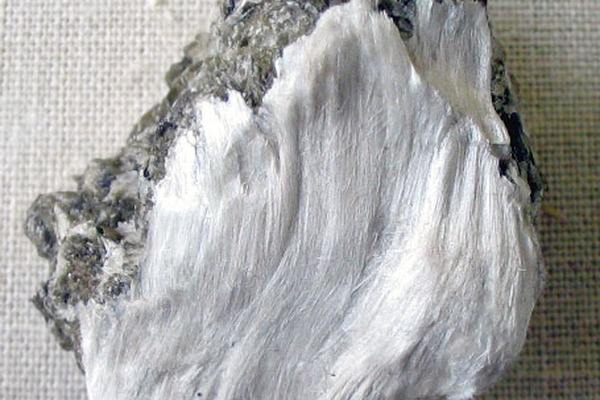 石棉又称“石绵”,为商业性术语,指具有高抗张强度、高挠性、耐化学和热侵蚀、电绝缘和具有可纺性的硅酸盐类矿物产品。它是天然的纤维状的硅酸盐类矿物质的总称。下辖2类共计6种矿物(有蛇纹石石棉、角闪石石棉、阳起石石棉、直闪石石棉、铁石棉、透闪石石棉等)。石棉由纤维束组成,而纤维束又由很长很细的能相互分离的纤维组成。石棉具有高度耐火性、电绝缘性和绝热性,是重要的防火、绝缘和保温材料。但是由于石棉纤维能引起石棉肺、胸膜间皮瘤等疾病,许多国家选择了全面禁止使用这种危险性物质。
