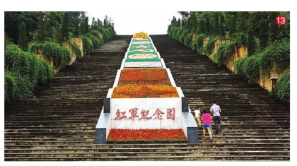 《强渡嘉陵江》主题雕塑后面是百多级台阶(有说是223级台阶),通向上面的高台(图13)。