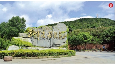如今,红军渡和临近的西武当山、崇霞宝塔等景点一道开发成了风景区(图8)。该景区占地5000余亩,由红军渡红色文化旅游区、西武当山道教文化旅游区和嘉陵江杜里坝水上休闲旅游区3部分组成,有红军渡纪念园、西武当山森林公园、中华百家姓氏追踪园、相思书法碑林园和乡土树种博览园。其中,红军渡红色文化旅游区是我们要寻访的。景区介绍包括红军渡标志铜质塑像、红军渡口遗址、将帅台、红军石刻标语碑廊、红四方面军长征出发地纪念馆、纪念林、红军街、渡江指挥所、王渡河、功勋馆、万名烈士纪念碑、将军陵、强渡嘉陵江战役纪念碑等景点。景区范围很大,我们体力有限,只能走到哪里看到哪里。
