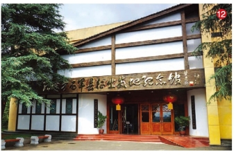 再上台阶就到了红四方面军长征出发地纪念馆(图12)。金光闪闪的馆名非常醒目,是由梁光烈题写的。