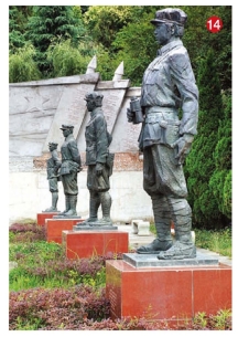 在红四方面军长征出发地纪念碑的两侧,是方面军的战将们的全身雕像(图14)。
