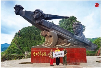 与红四方面军长征出发地纪念碑相对的就是红军渡的标志性铜质雕像——《红军渡》主题雕塑(图15)。