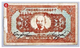 陈列馆里有红军钱币,包括壹元纸币(图6)、叁串布币(川陕省苏维埃政府工农银行发行,图7)、500文铜币(图8,川陕省苏维埃造)等。
