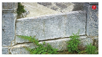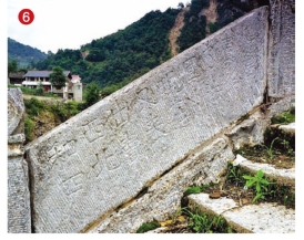 红军在桥栏、桥柱、桥墩等处錾刻的29条422余字的标语都可以看到,字体大多近于隶书,有一些用了讹字、别字,还有一些看不太清楚了。能够看清楚的有“剿灭了卖国□蒋介石,穷人□享太平!”“……屠杀西北回民的刽子手,打倒万恶滔天的……”“卖国贼蒋介石把川藏航空路送给美国,把成渝铁路送给英国”“蒋介石是屠杀抗日工人士兵的刽子手”。在一座桥上有如此多的红军石刻标语,是长征路上石刻标语密集度之首(图6一图8)!